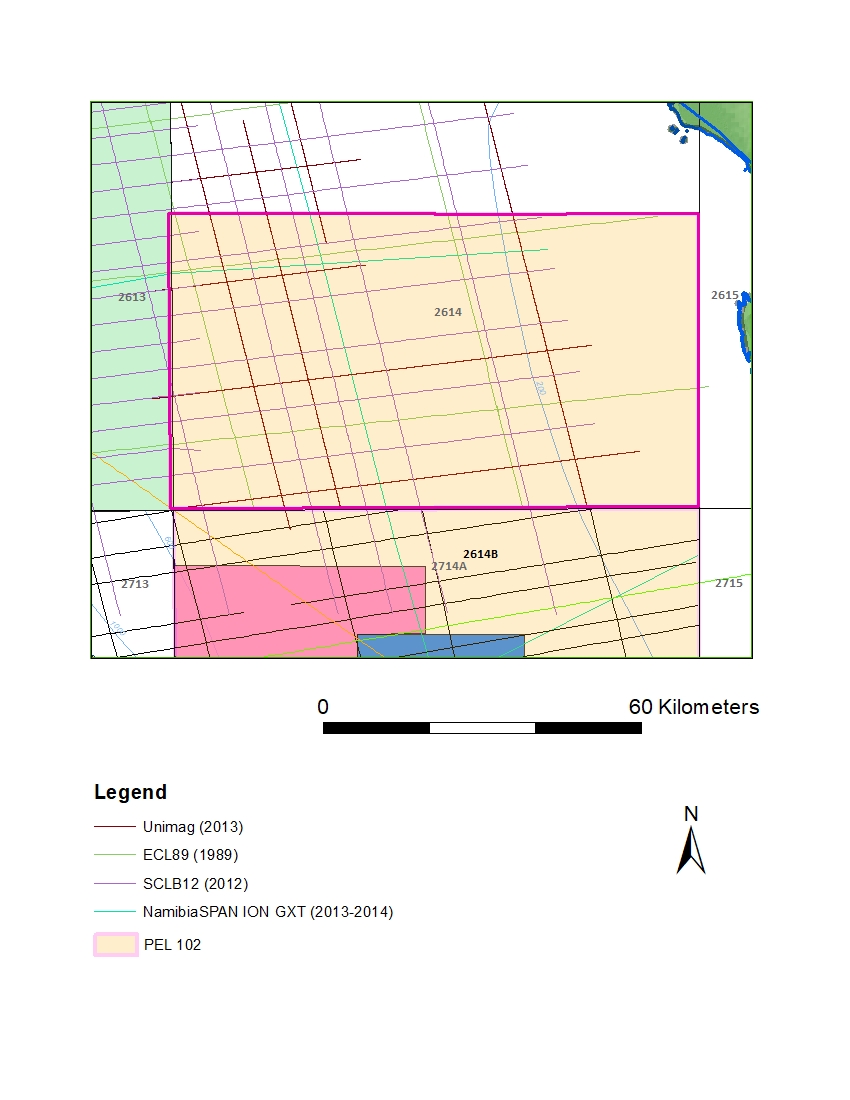 NAMCOR E&P is operating the following Petroleum Exploration Licenses (PELs), 67 and 72 (Blocks 2714A&B), 79 (Blocks 2815 and 2915), 82 (Blocks 2112B and 2212A) and 102 (Block 2614B). PEL 82 is in the Walvis Basin followed by PEL 102 in the Luderitz Basin and finally PELs, 67 & 72 and 79 within the Orange Basin and adjacent to the Kudu Gas Field.